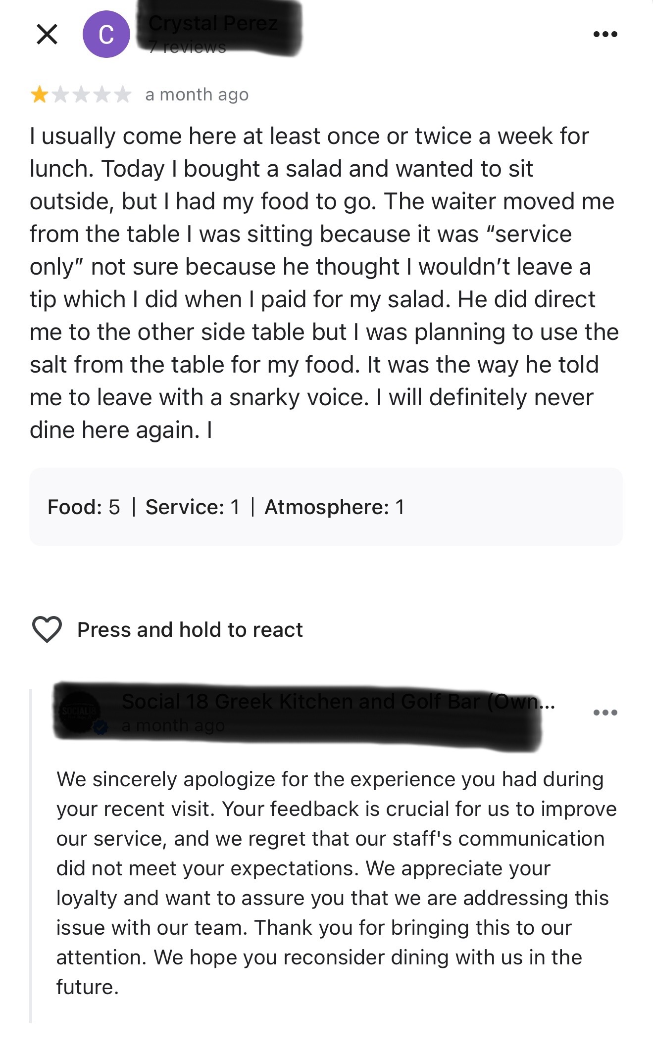 See all reviews (Google, Facebook, Uber Eats, Yelp, DoorDash, etc.) in one place.